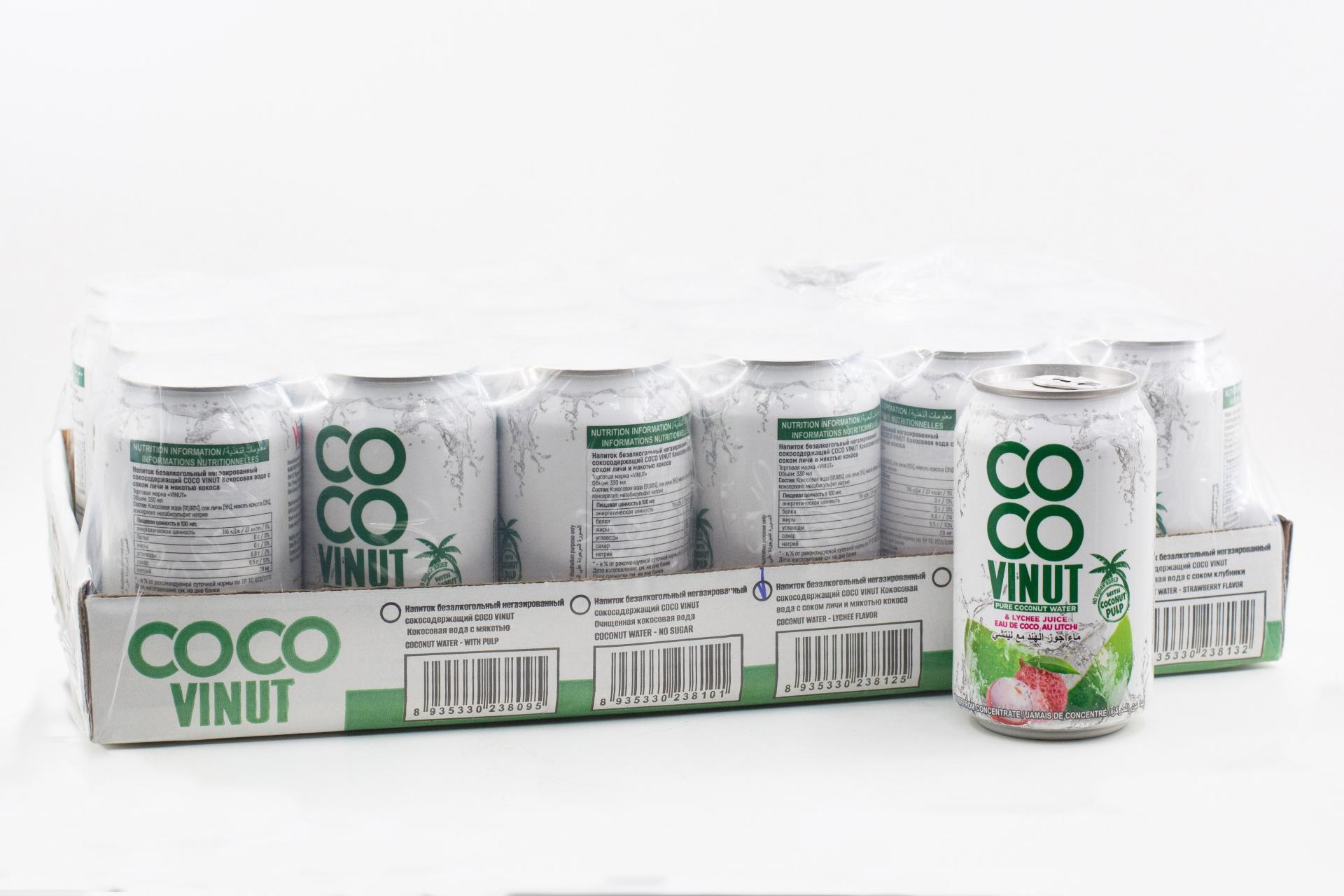 COCO Vinut Кокосовая вода с соком личи и мякотью кокоса 330мл ж/б49,99 руб. за штуку (в упак. 24 шт.) |