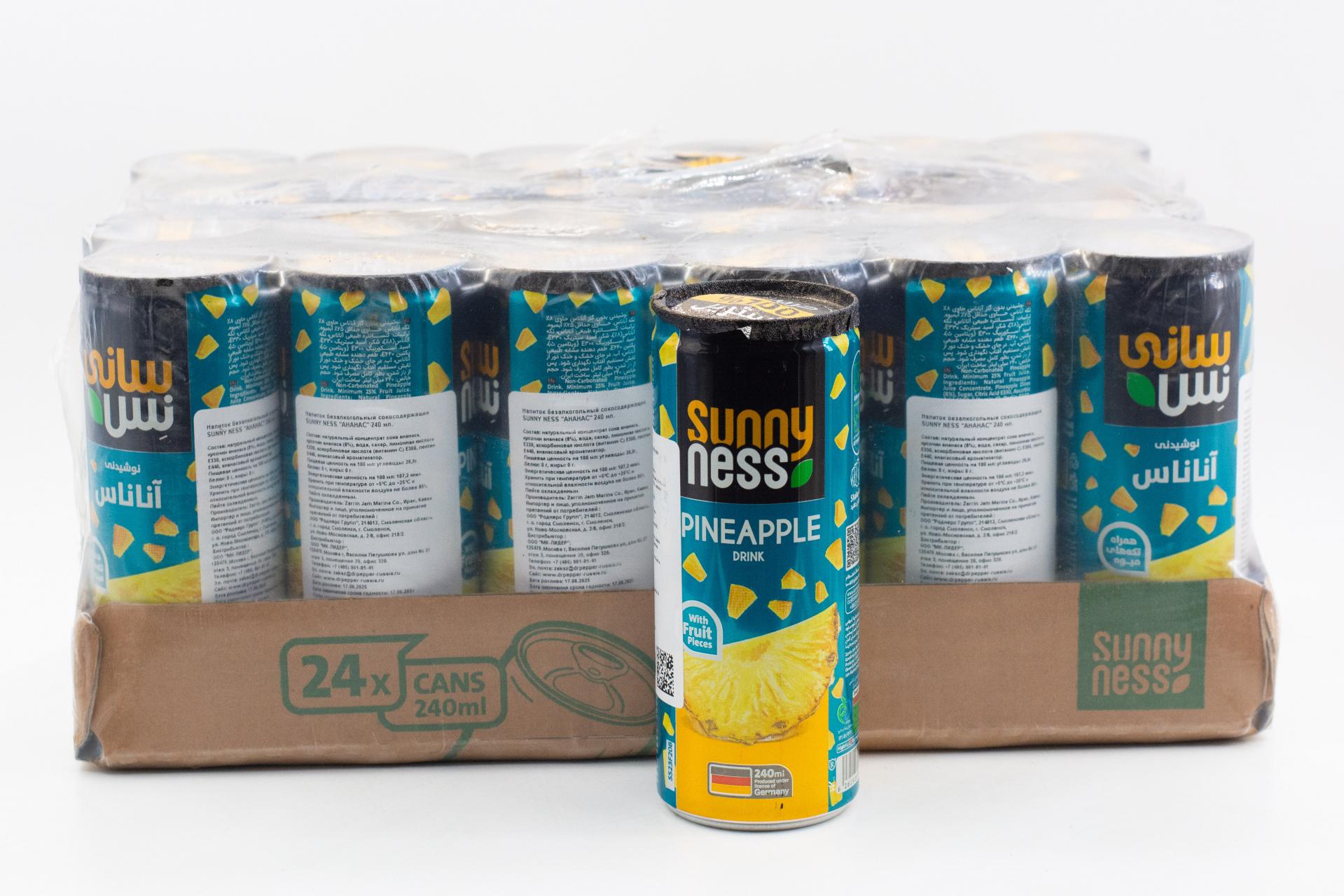 Напиток безалкогольный сокосодержащий Sunny Ness Ананас (Иран) 240мл ж/б49,90 руб. за штуку (в упак. 24 шт.) |