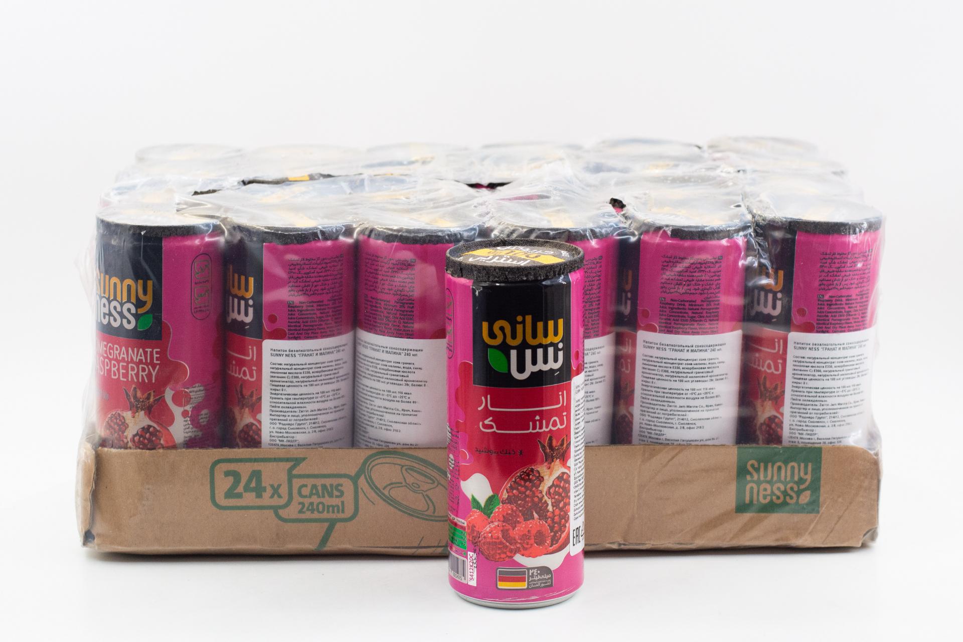Напиток безалкогольный сокосодержащий Sunny Ness Гранат и малина (Иран) 240мл ж/б49,90 руб. за штуку (в упак. 24 шт.) |